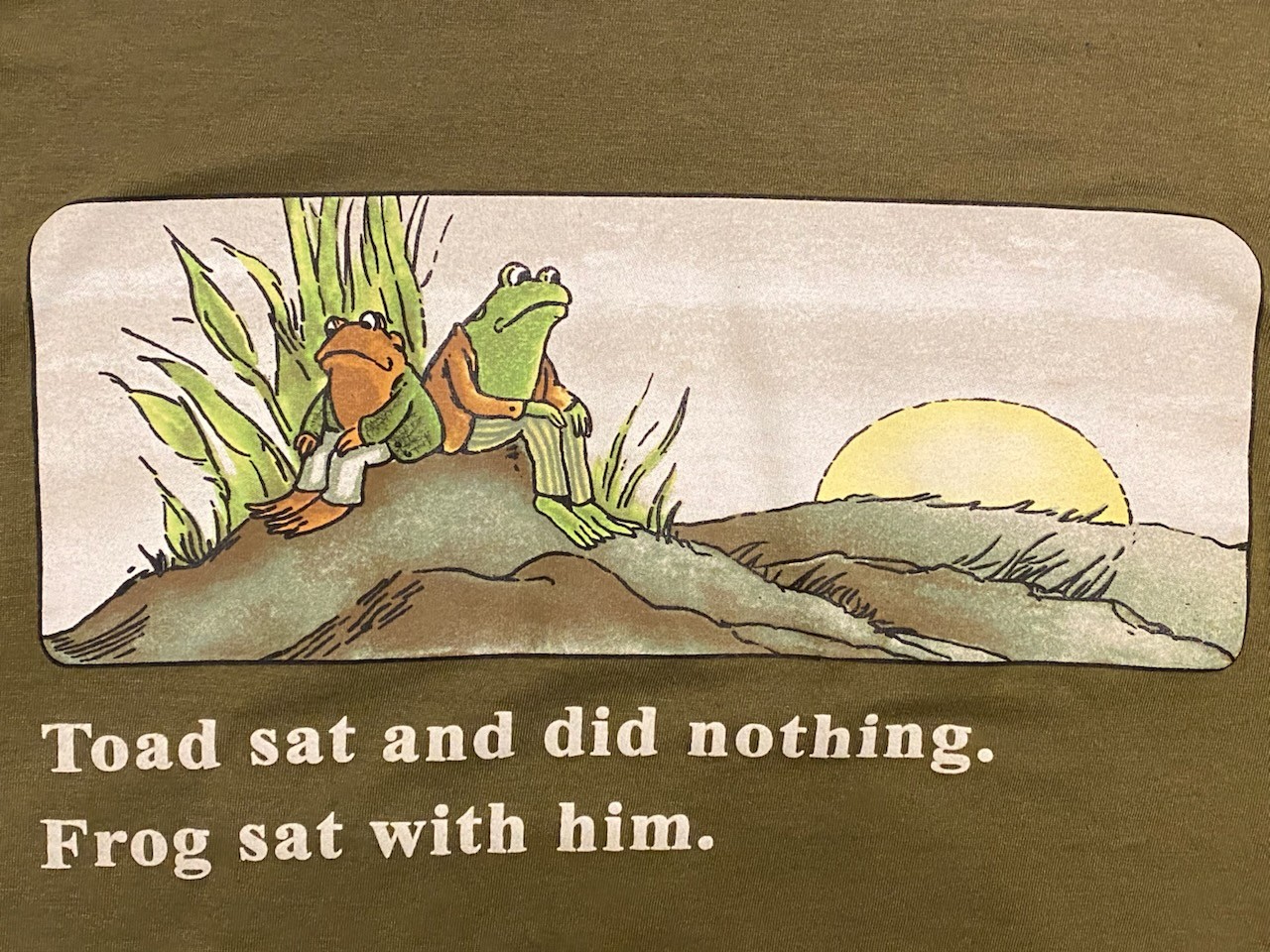 When my kids were young I used to read stories to them at night. Frog and Toad was a favorite. Recently one of my daughters gave me a T-shirt with a quote on the front saying: